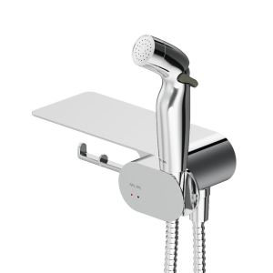 Самый широкий спектр возможностей с инновационным многофункциональным смесителем с гигиеническим душем от АМ.РМ! Смеситель оснащен прогрессивным картриджем, движение которого происходит в одной плоскости, делая управление максимально комфортным.Гигиенический душ зафиксирован непосредственно в самом смесителе, что экономит пространство и выглядит лаконично. Чтобы включить смеситель, достаньте гигиеническую лейку и поворотом ее держателя включите устройство. При нажатии на специальную кнопку на самой лейке начинается подача воды.Весь продукт представляет собой удобную полочку, на которой можно разместить все, что необходимо вам под рукой. На интегрированном держателе можно размещать туалетную бумагу, а на крючке - полотенце.Встроенный ограничитель температуры позволит избежать ожога.Совмещение рукоятки и держателя для гигиенического душа минимизирует риск забыть перекрыть воду в смесителе.