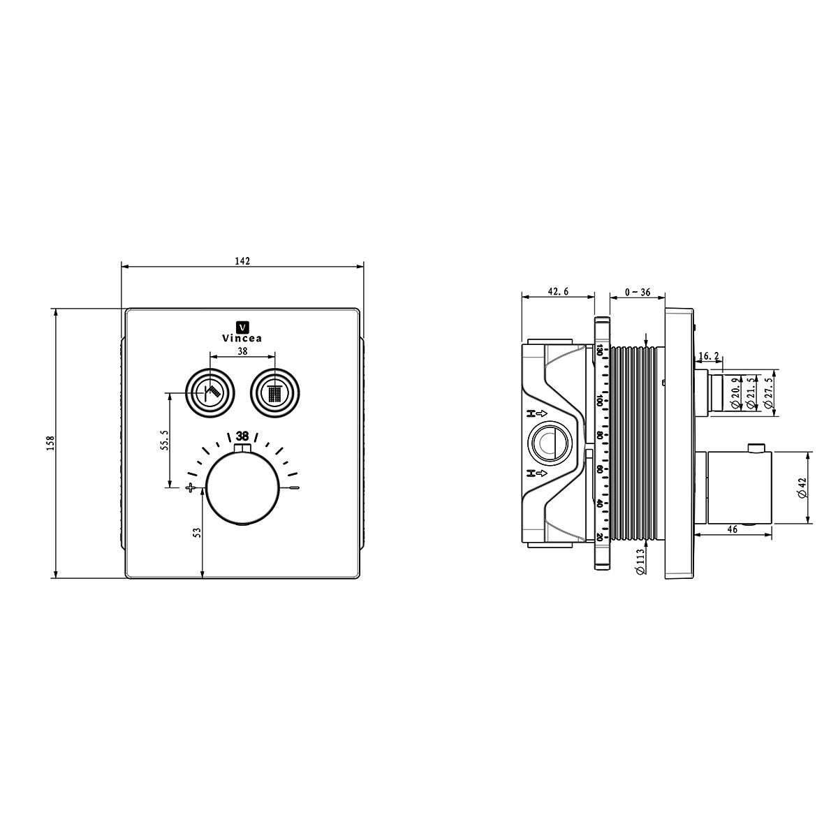 Встраиваемый смеситель для душа Vincea VSCV-321TGM двухфункциональный, термостатический, вороненая сталь