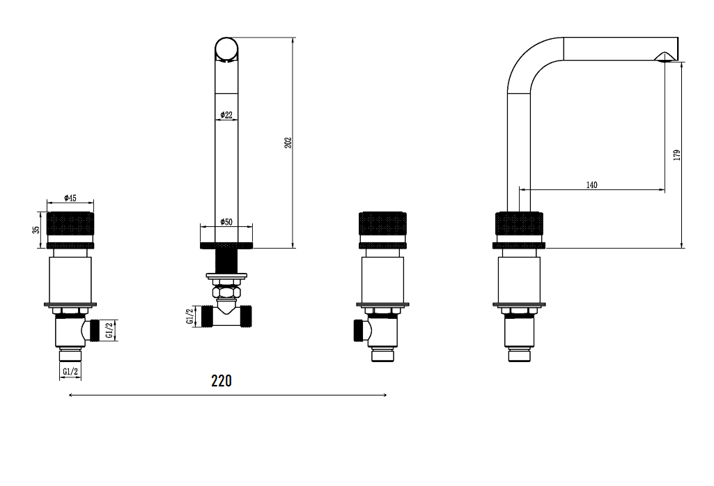 Встраиваемый смеситель для раковины Boheme Stick Linea 152-G.3 золото