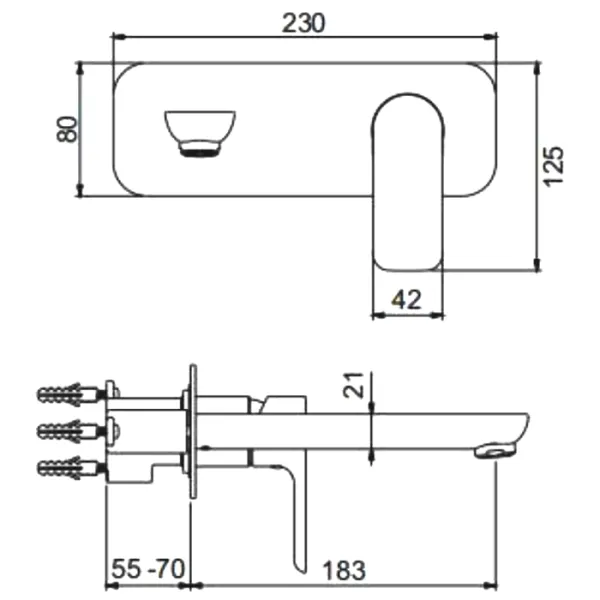 - Длина излива, мм: 183