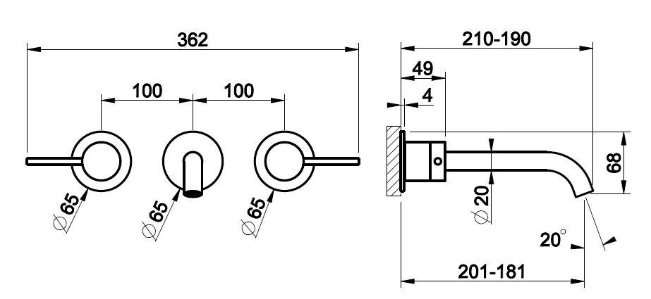Трёхкомпонентная конструкция позволяет разместить элементы управления по обе стороны от излива, обеспечивая удобный доступ и точную настройку температуры и напора воды. Отсутствие донного клапана подчёркивает чистоту линий и визуальную лёгкость изделия, идеально вписываясь в минималистичные и дизайнерские интерьеры.