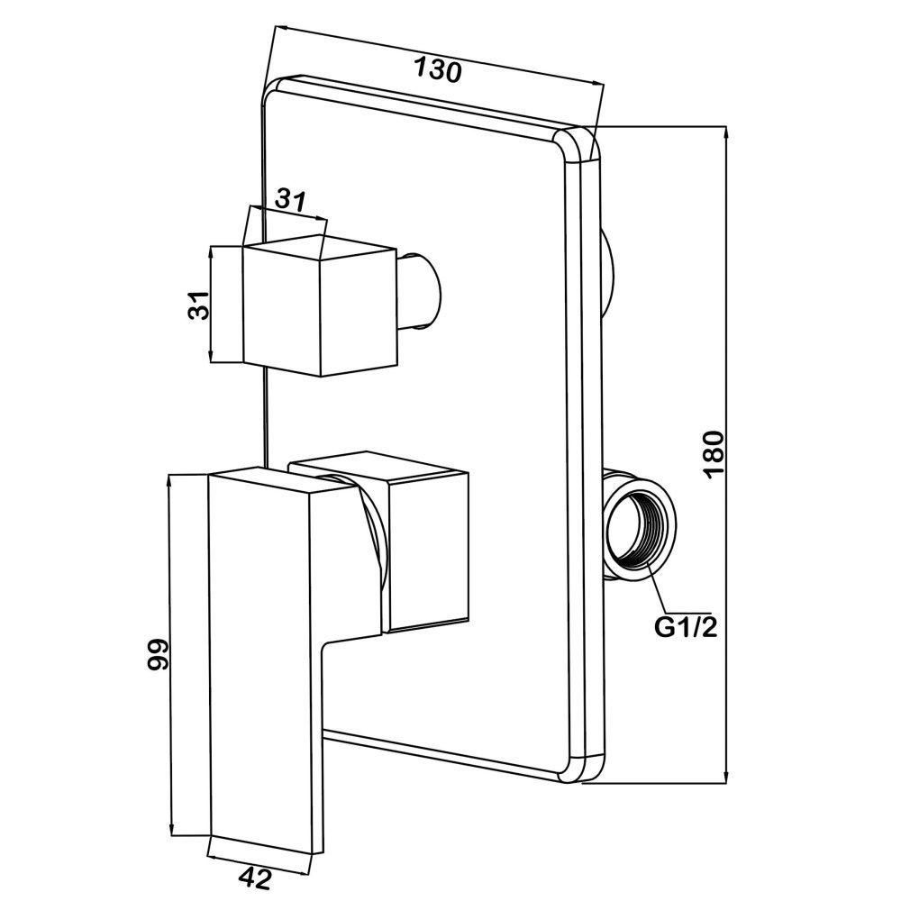 Встраиваемый смеситель Swedbe Platta 5515 подключение на два выхода хром