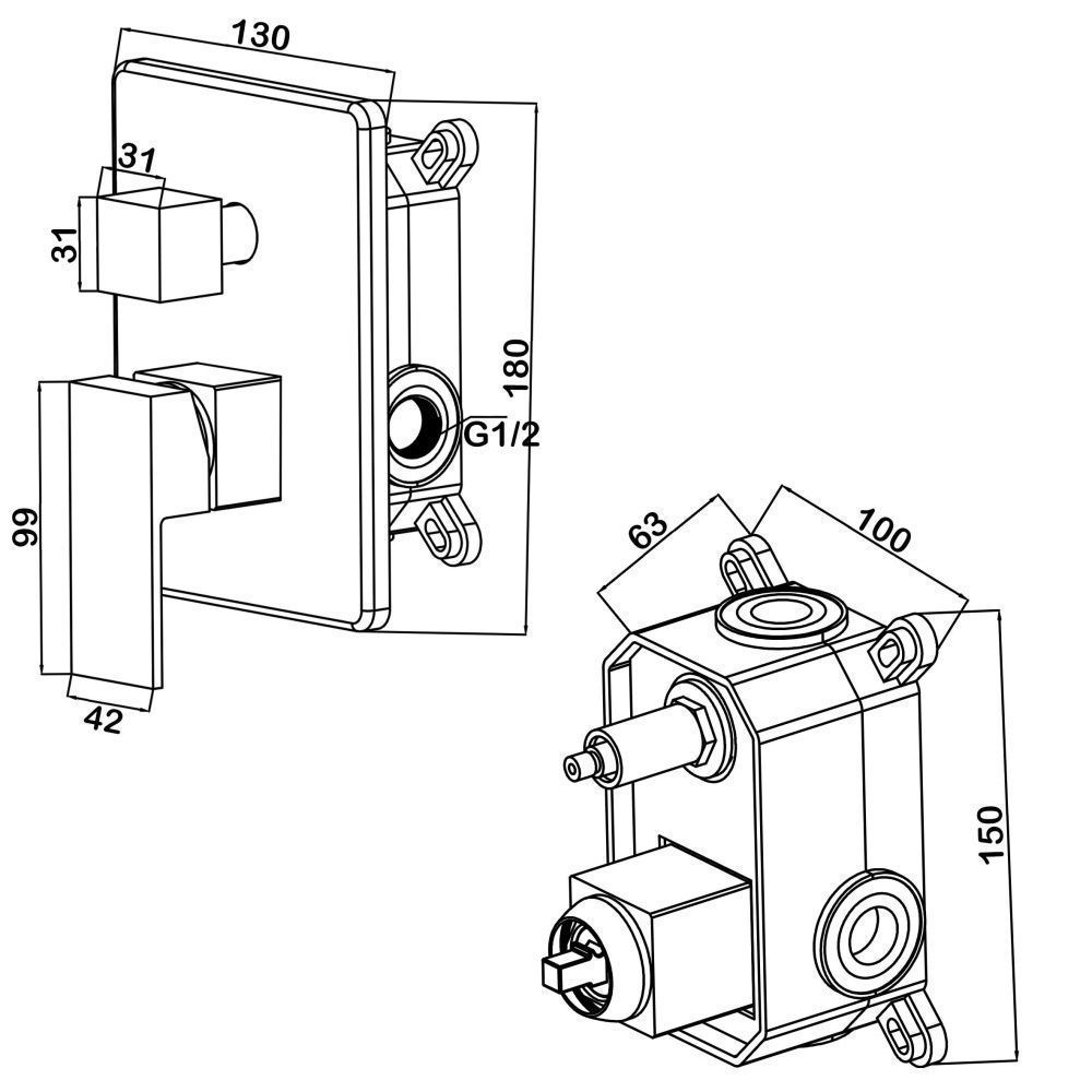 Смеситель Swedbe Platta 5519BCмеситель встраиваемый с подключением на 2 выхода. Полный комплект установки (комплект скрытого монтажа и наружная часть смесителя). Керамический картридж Sedal. Керамический дивертор. Смеситель изготовлен из гигиенически стабильной латуни с высоким содержанием меди.