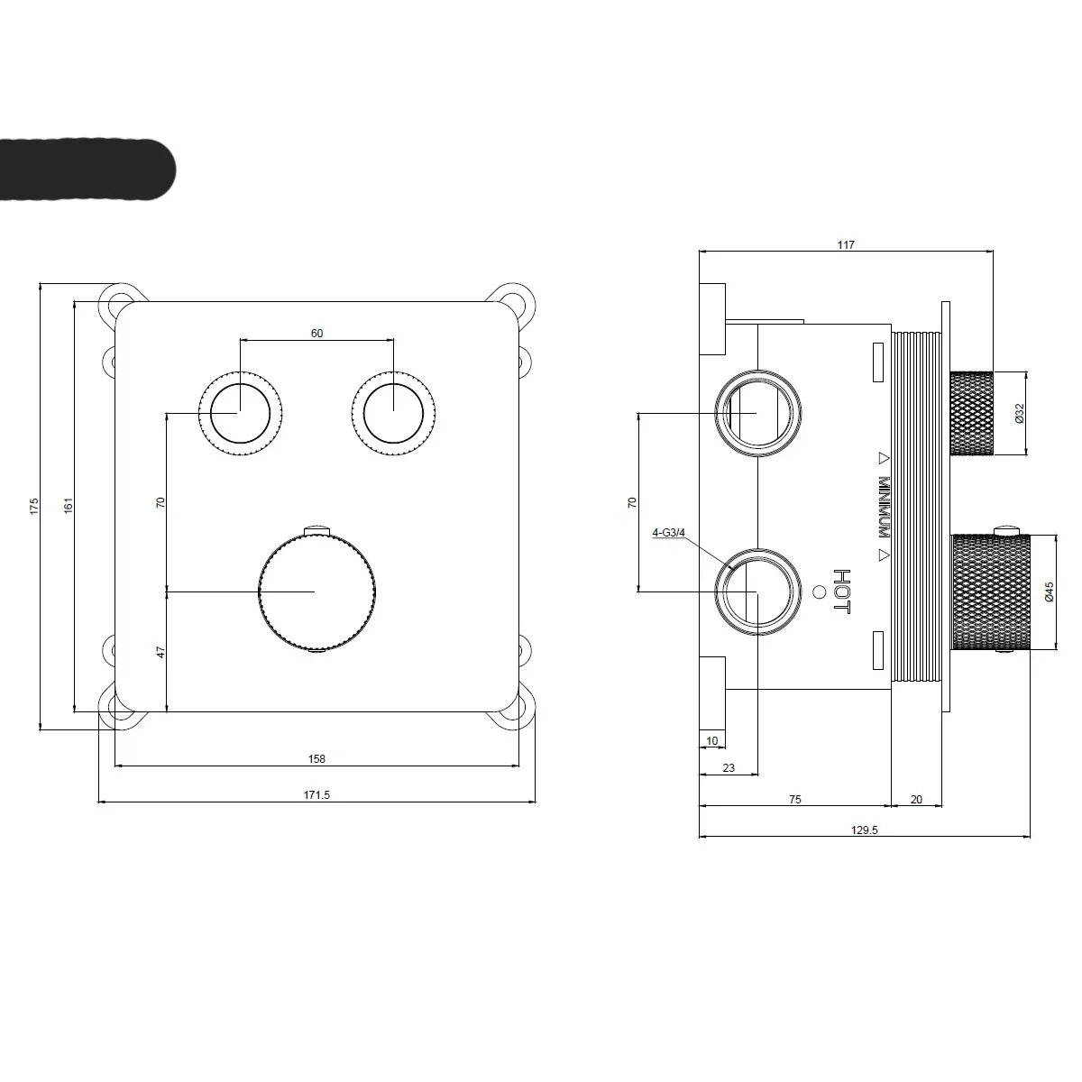 Встраиваемый смеситель-термостат на 2 источника AQUAme AQM8811GM с регулировкой напора графит матовый