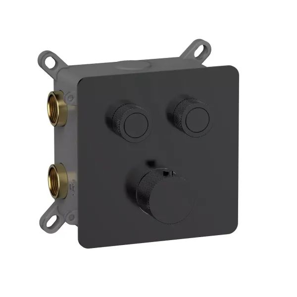 Встраиваемый смеситель-термостат на 2 источника AQUAme AQM8811MB с регулировкой напора чёрный матовый купить