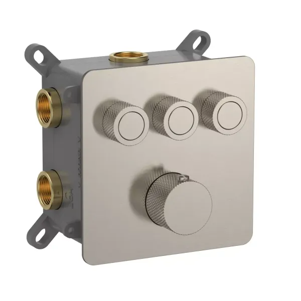 Встраиваемый смеситель-термостат на 3 источника AQUAme AQM8812BN с регулировкой напора никель брашированный купить
