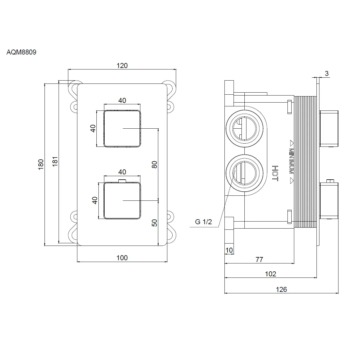 Встраиваемый смеситель-термостат на 3 источника AQUAme Savona AQM8809CR хром