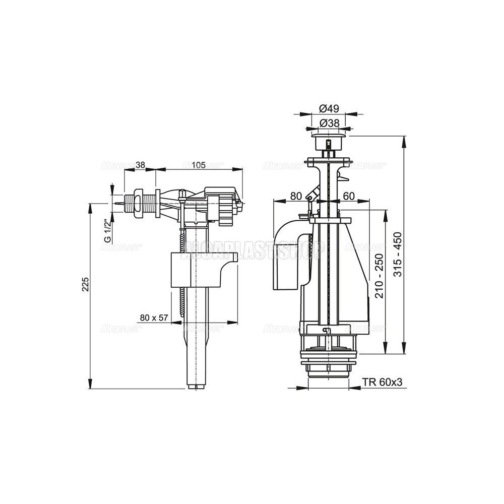 Выпускной комплект с двойной кнопкой AlcaPlast SA08S 1/2" CHROM купить