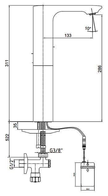 Высокий электронный смеситель для раковины E.C.A. Photoscell 108108036EX хром