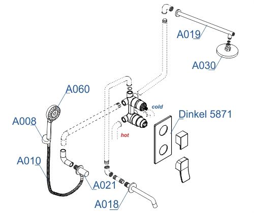 Wasserkraft А175819 Встраиваемый комплект для ванны с верхней душевой насадкой, лейкой и изливом
