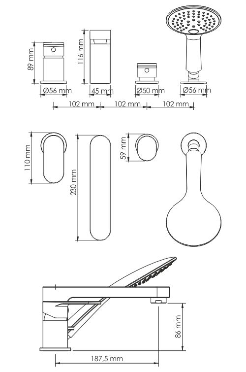 WasserKRAFT Elbe 7455 Смеситель на борт ванны, 4 отверстия