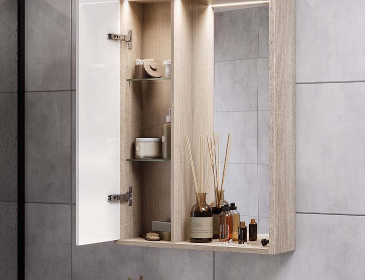 Зеркальный шкаф Акватон Бостон 60см белый/дуб эврика 1A240202BN010