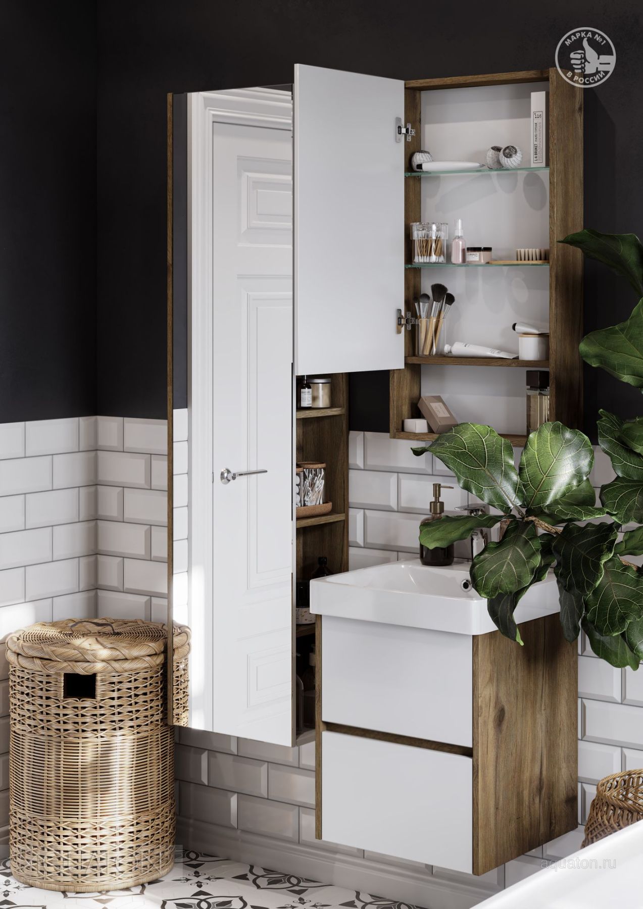 Зеркальный шкаф Акватон Сканди 45см белый/дуб рустикальный 1A252002SDZ90 купить