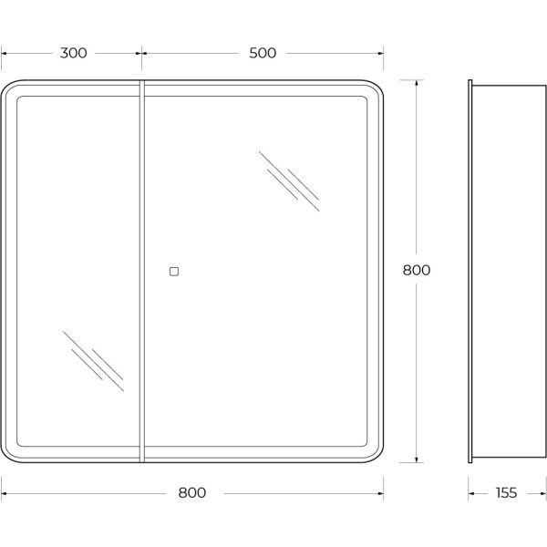 Зеркальный шкаф BelBagno с двумя дверцам, с двумя стекл. полками, с подсветкой, сенсорным выключателем SPC-MAR-800/800-2A-LED-TCH, 12W,220-240V, 800x800x150 белый матовый