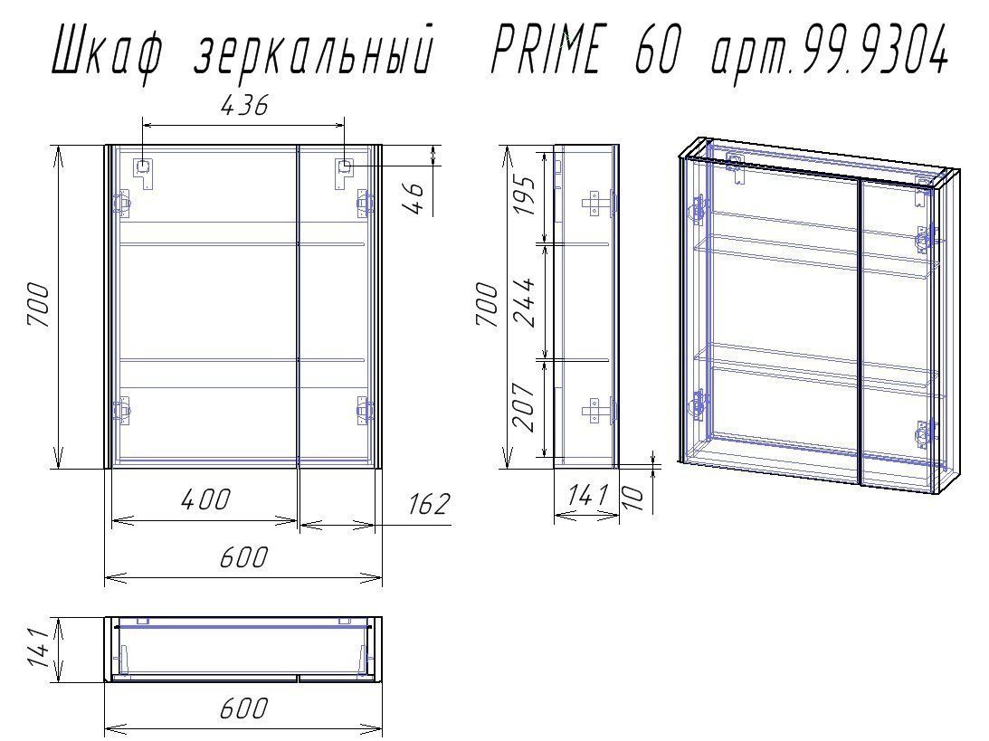 Зеркальный шкаф Dreja Prime 99.9304 60 см белый купить
