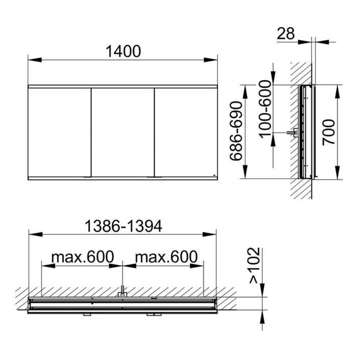 Зеркальный шкаф Keuco Royal Modular 800300140000000 140 см