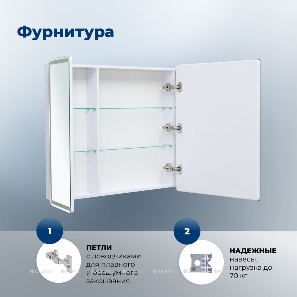 Зеркальный шкаф Aquanet Оптима 120 с LED подсветкой — это умное решение для вашей ванной. Он сочетает элегантный внешний вид, продуманную эргономику и передовые технологии. С ним ваше утро станет ярче, а вечер — комфортнее.
