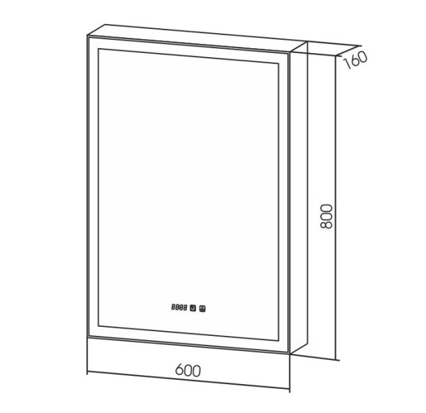 КИОТО 60- Зеркало-шкаф (600*800) правый, сенсор, часы, тепл/холод свет LED-00002358
