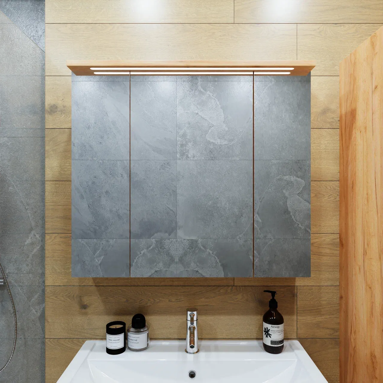 Зеркальный шкаф с подсветкой Бриклаер Форест 4627125414718 80 см дуб золотой/антрацит купить