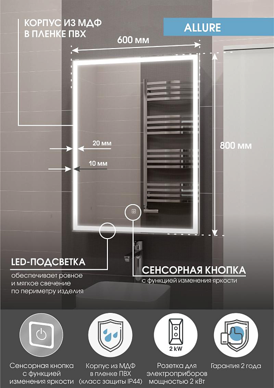 Зеркальный шкаф с подсветкой Misty Алюр 60см правый белый купить
