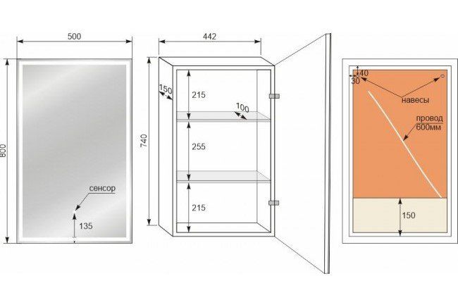 Тип:зеркало-шкаф с подсветкой