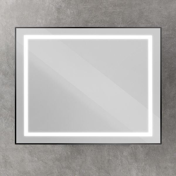 Зеркало BelBagno в алюминиевой раме со встроенным светильником и сенсорным выключателем по периметру рамы, SPC-KRAFT-1000-800-SENS-NERO, 1000x800x32 мм