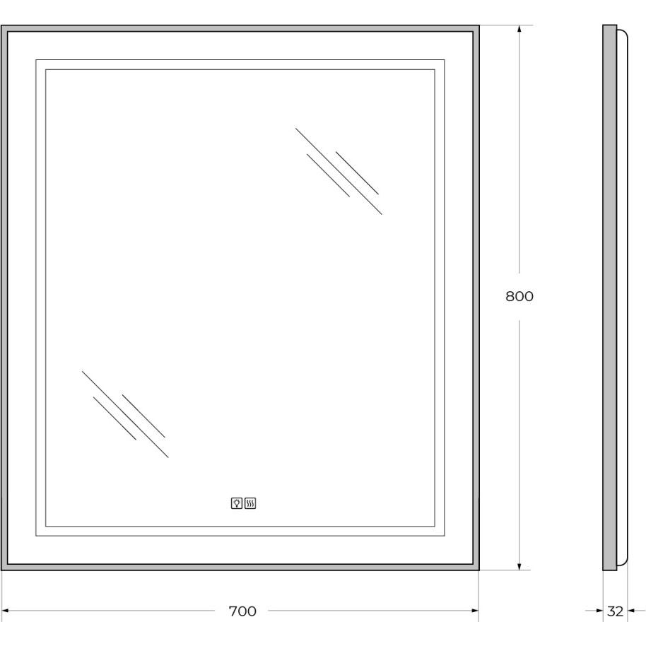 Зеркало BelBagno в алюминиевой раме со встроенным светильником, сенсорным выключателем и подогревом, SPC-KRAFT-700-800-LED-TCH-WARM-NERO, 700x32x900 мм купить