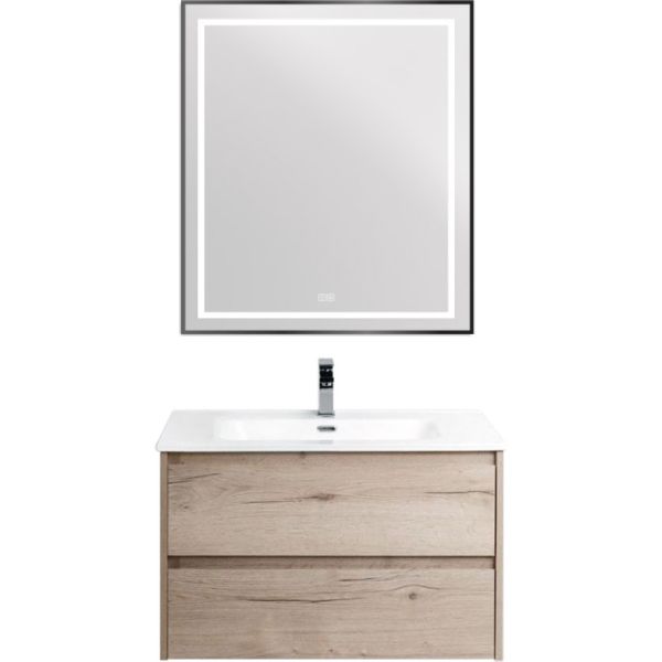 Зеркало BelBagno в алюминиевой раме со встроенным светильником, сенсорным выключателем и подогревом, SPC-KRAFT-700-800-LED-TCH-WARM-NERO, 700x32x900 мм
