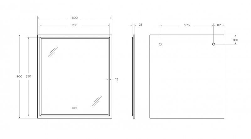 Зеркало Cezares с контурной подсветкой, сенсорным выключателем и подогревом CZR-SPC-INT-800-900-LED-TCH-WARM-BL