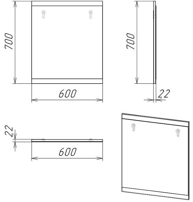 Габариты (ШxВxГ): 600x700x22 мм.