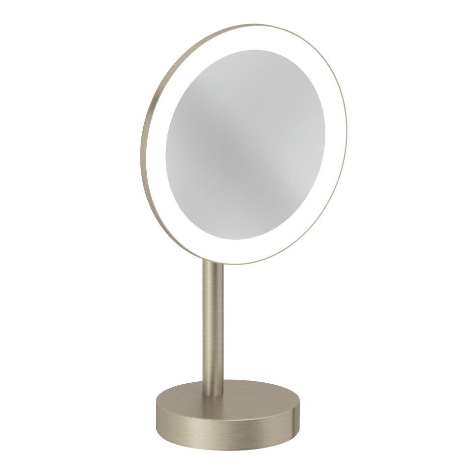 Зеркало косметическое Kludi Vela R 58995N5F с 3-х кратным увеличением и LED-подсветкой брашированный никель