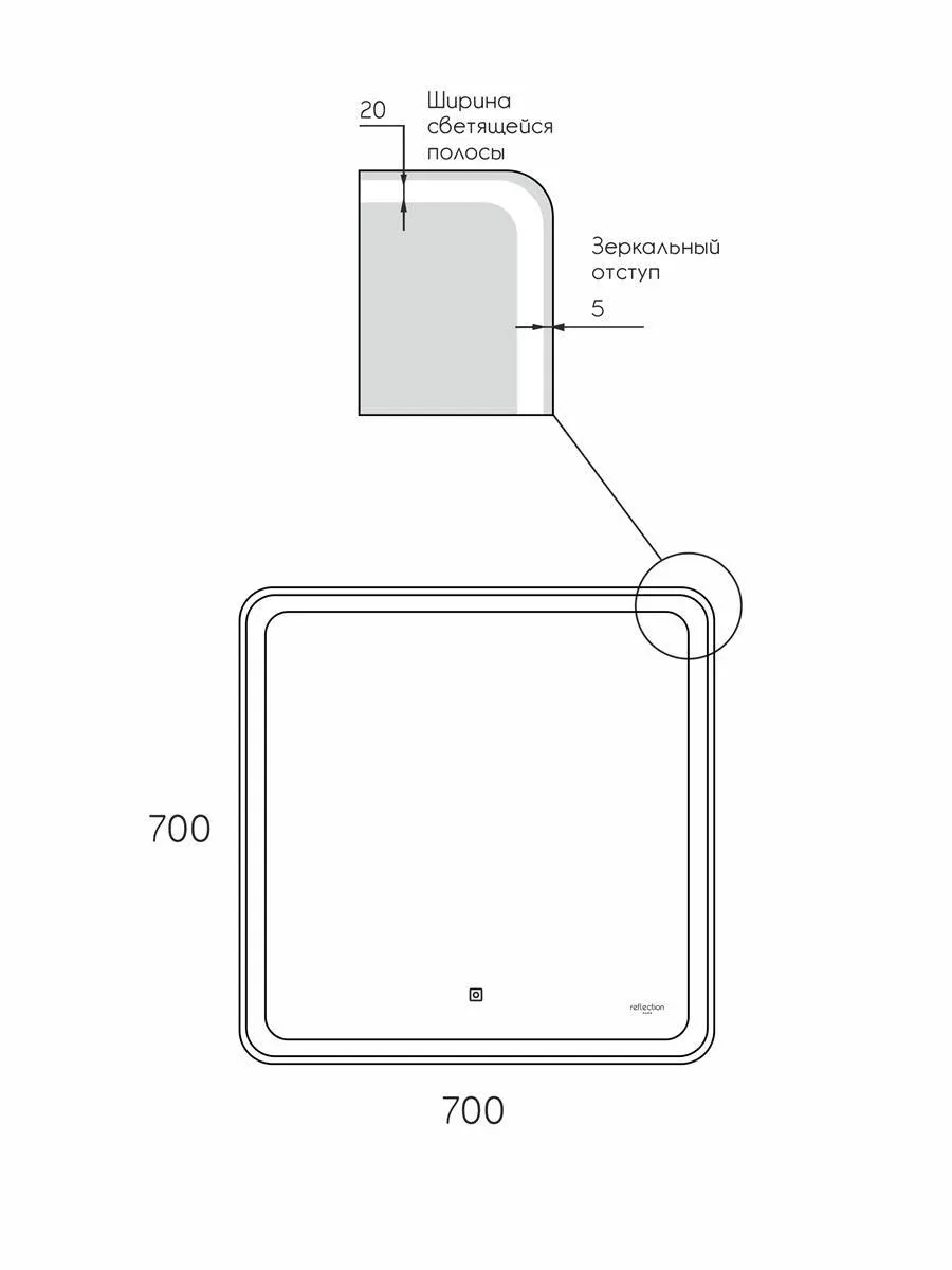 Зеркало Reflexion Magic с LED подсветкой и сенсорным выключателем 700*700мм