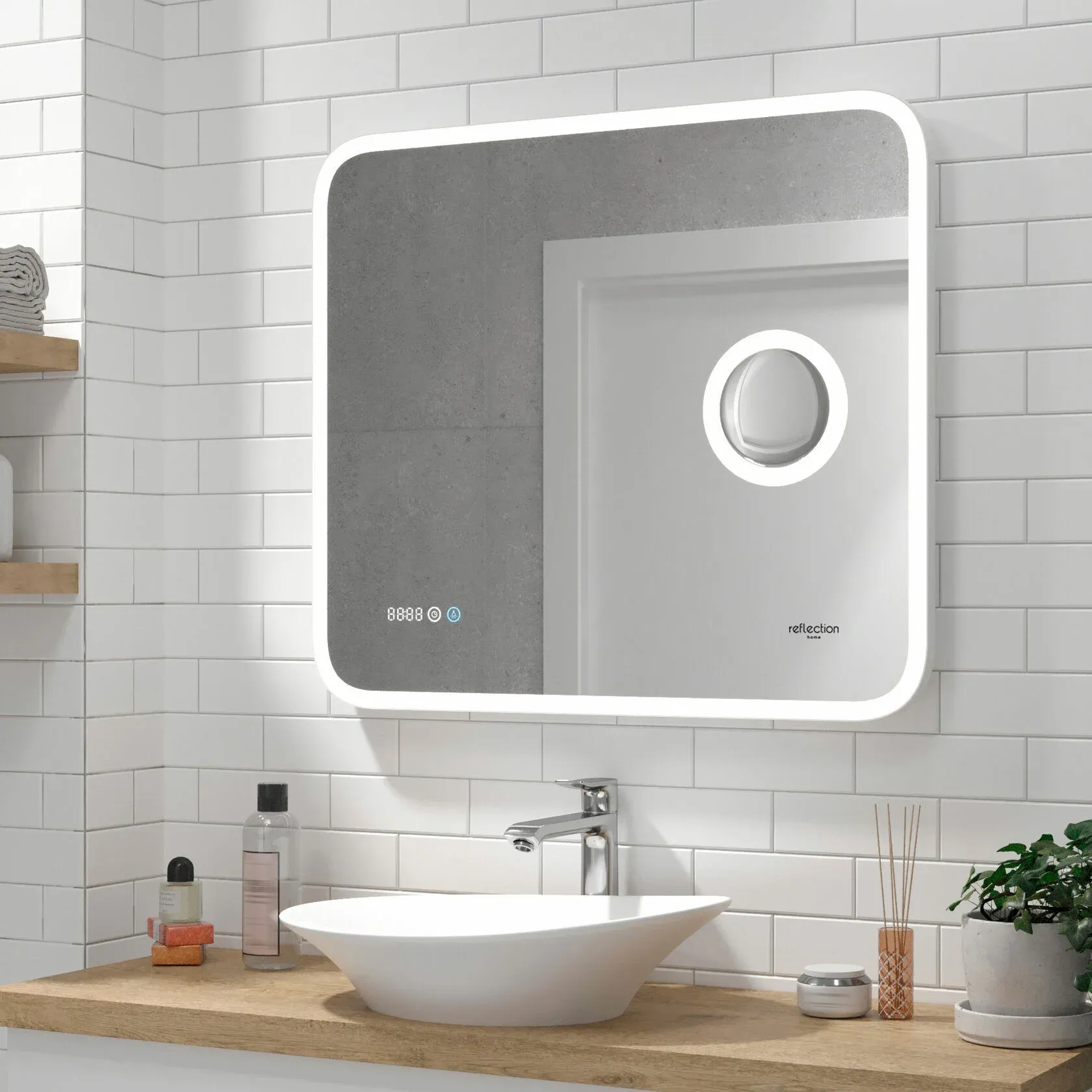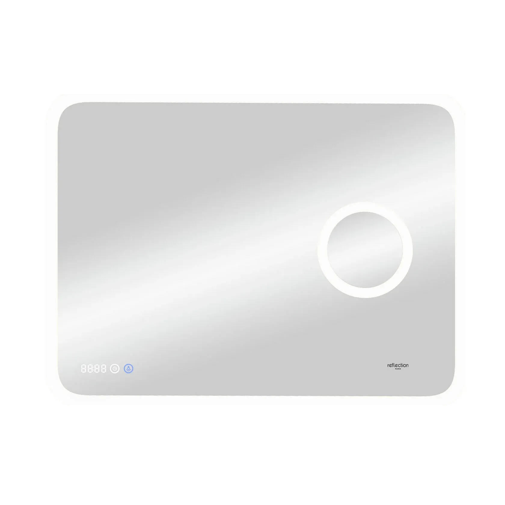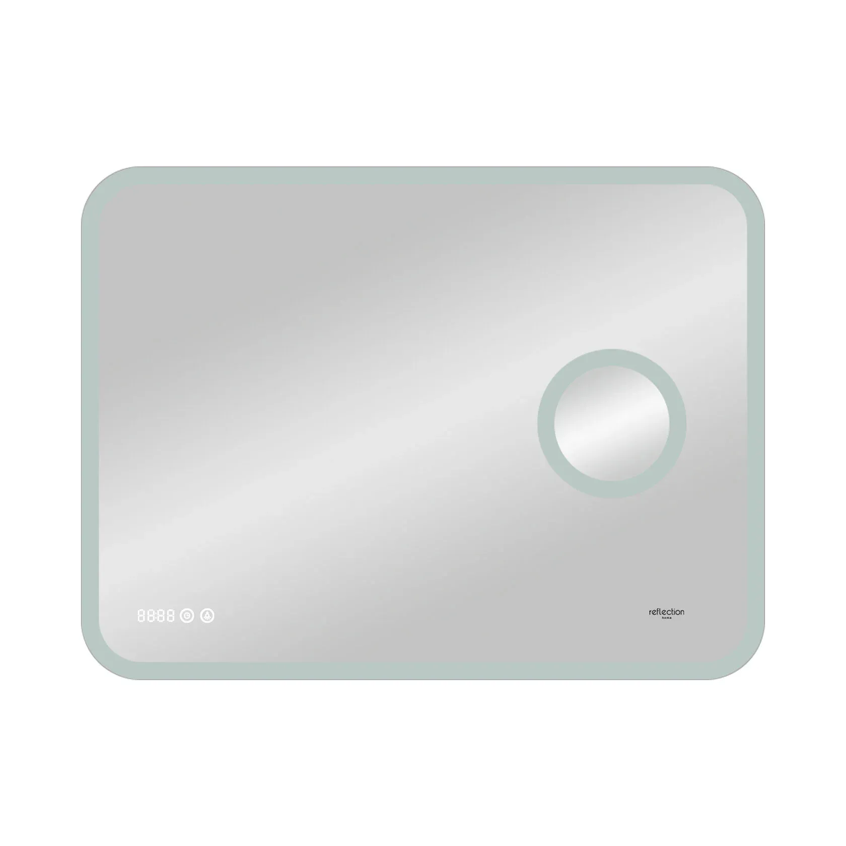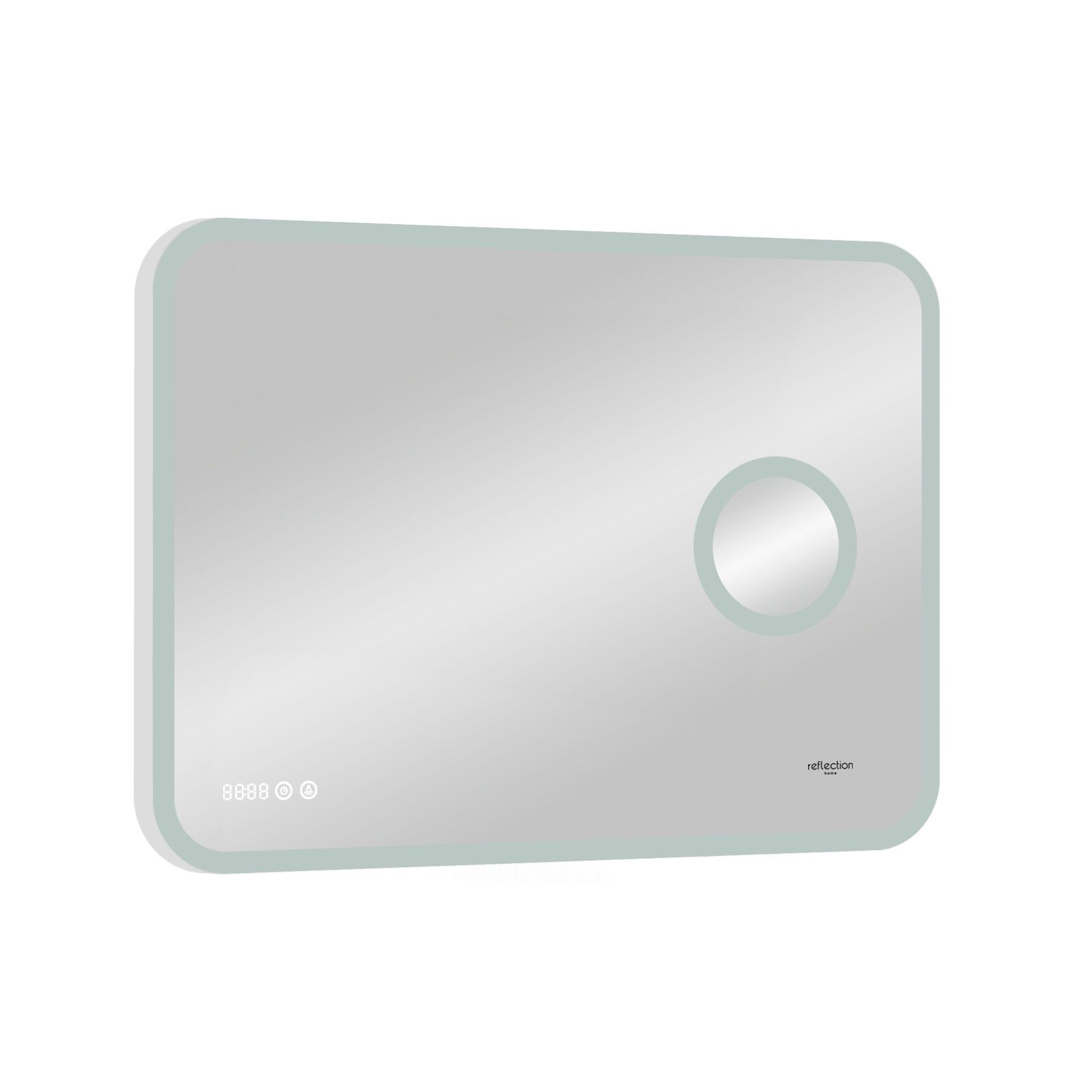Reflexion Point - сочетание красоты и функциональности. Стильный современный дизайн зеркала дополнен макияжным зеркалом с подсветкой и увеличением, а также лаконичными электронными часами. Скругленные грани придают утонченный дизайн и безопасны для ваших детей.