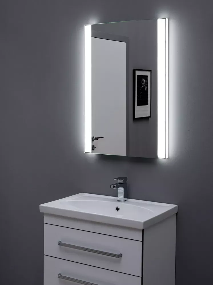 Зеркало Aquanet Форли 6085 LED имеет световые блоки с двух сторон от зеркального полотна. Светильник и зеркало в одном изделии – очень удобный вариант для ванной комнаты. Встроенный в модель LED-светильник при включении льет чуть холодноватый приглушенный свет словно изнутри зеркального полотна, придавая ему легкость и воздушность. Это создает в ванной комнате интимную обстановку, которая наилучшим способом позволяет релаксировать в ванне или наслаждаться гидромассажем под душем. Удобна подсветка и при ежедневных гигиенических процедурах, когда нет необходимости в ярком свете. Светильник и зеркало – это единая модель. Чтобы оставить пространство для выхода света, зеркальная амальгама не нанесена на края изделия с двух сторон. Выключатель светильника бесконтактный, для этого модель снабжена инфракрасным датчиком. Отлично будет смотреться с тумбой в стиле модерн шириной 60 см