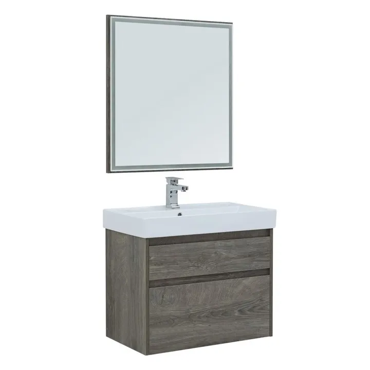Зеркало Aquanet Nova Lite шириной 75 см отлично вписывается в комплект с тумбой из влагостойкой ламинированной древесно-стружечной плиты в благородном цвете «дуб рошелье». Фактура натурального дерева выглядит изысканно. Выполняет сразу две функции: непосредственно зеркала и осветительного прибора, благодаря LED-подсветке по периметру.
