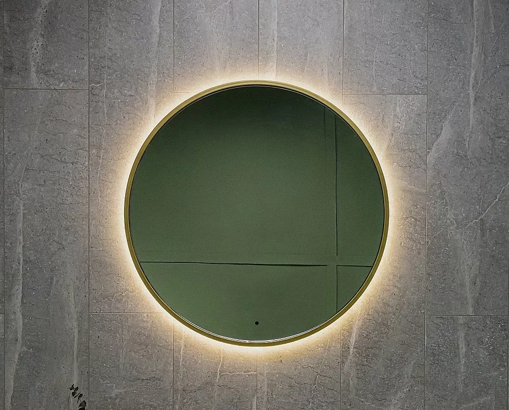 Круглое зеркало с золотым матовым обрамлением - практичный и стильный элемент декора. Модель сделана из стекла высшего качества M0 (влагостойкое, минимальные оптические искажения).