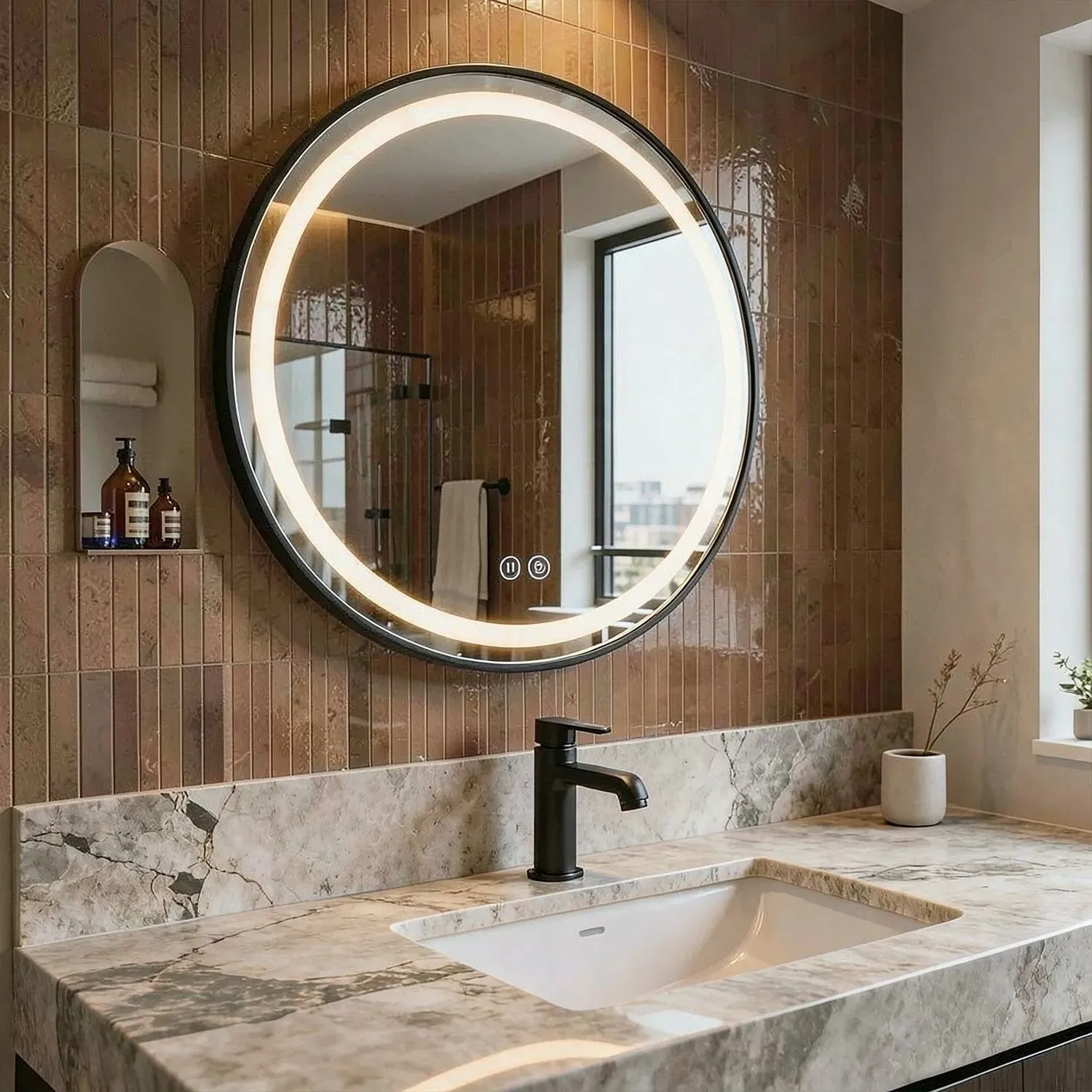 Зеркало Azario Брэд — это безупречное сочетание эстетики и передовых технологий для вашего комфорта каждый день.