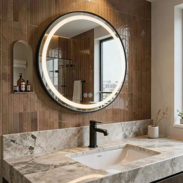 Компактная модель размером 600х600х30 мм оснащена инновационным сенсорным выключателем. Управление подсветкой становится максимально простым и безопасным: легкое прикосновение к сенсорной панели включает или выключает свет, что особенно удобно влажными руками. Встроенный 3-режимный диммер позволяет регулировать яркость освещения в зависимости от времени суток и вашего настроения, создавая идеальную атмосферу для расслабления после рабочего дня или бодрящего утреннего душа .