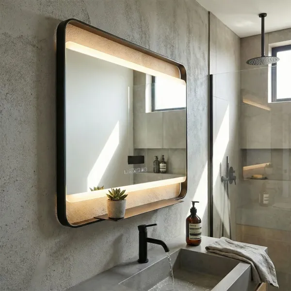 Удобство: В нижней части зеркала предусмотрена небольшая полочка для косметики, зубных щеток или других мелочей, которые всегда должны быть под рукой.