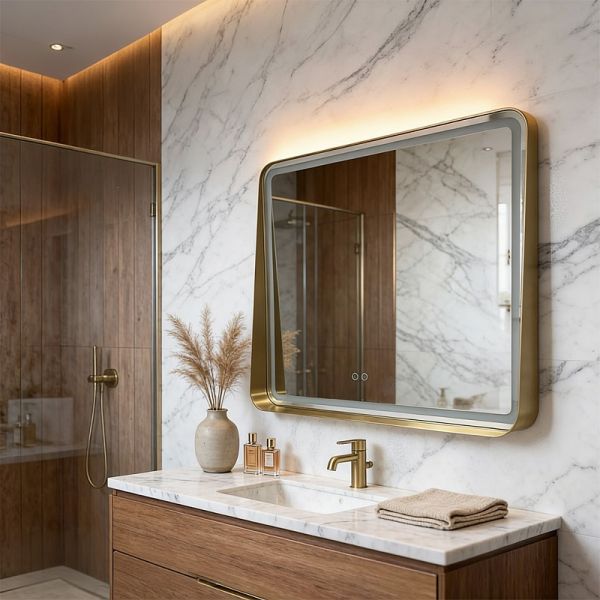 Зеркало толщиной 10 мм выглядит массивно и стильно. Светодиодная LED-подсветка по периметру создает мягкое, равномерное свечение без бликов и мерцания, визуально расширяя пространство вашей ванной комнаты. Это идеальное сочетание эстетики, функциональности и современных технологий.