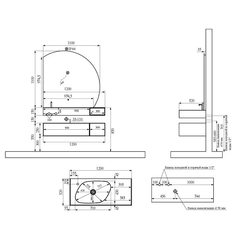 Зеркало с подсветкой Black&White Universe 955.MR1000L 110 см купить