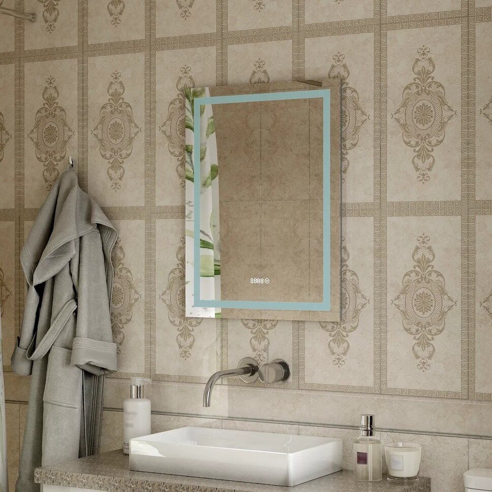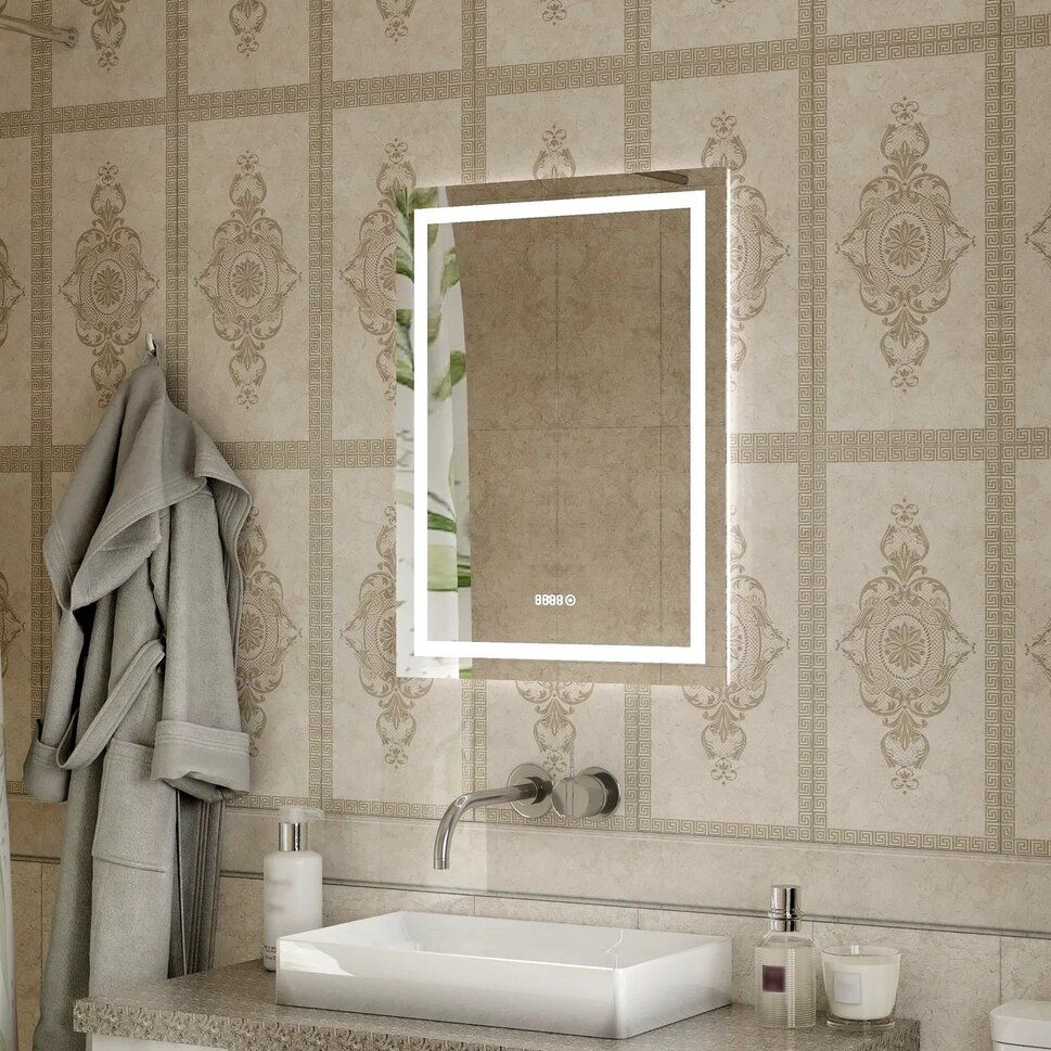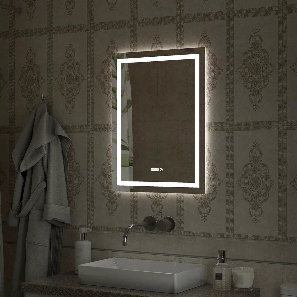 Зеркало "Verte Led" 500х700 с часами, датчиком движенияLED подсветка 6000Кдатчик движениявстроенные часы