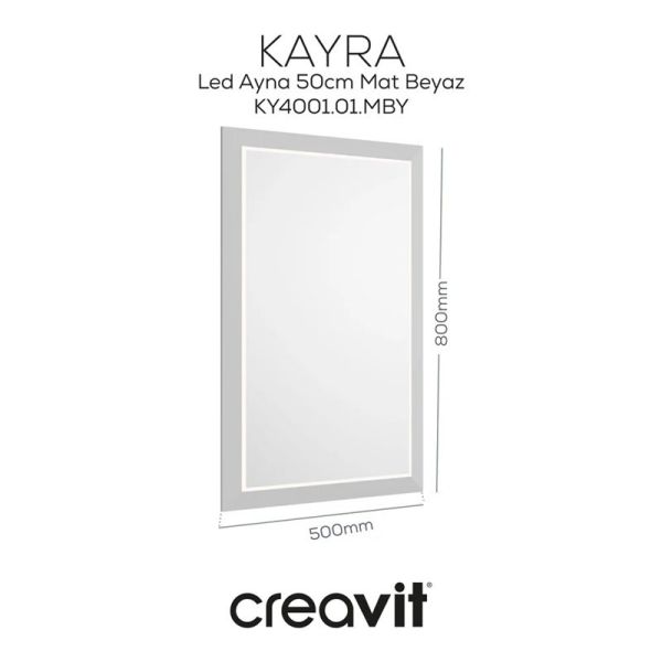 Creavit Kayra KY4001.01.MBY Зеркало с подсветкой 500*800 мм (белый матовый). Материал корпуса МДФ, покрытие лаковое, форма прямоугольная, LED-подсветка, свет белый, включается простым касанием руки, монтаж настенный подвесной.