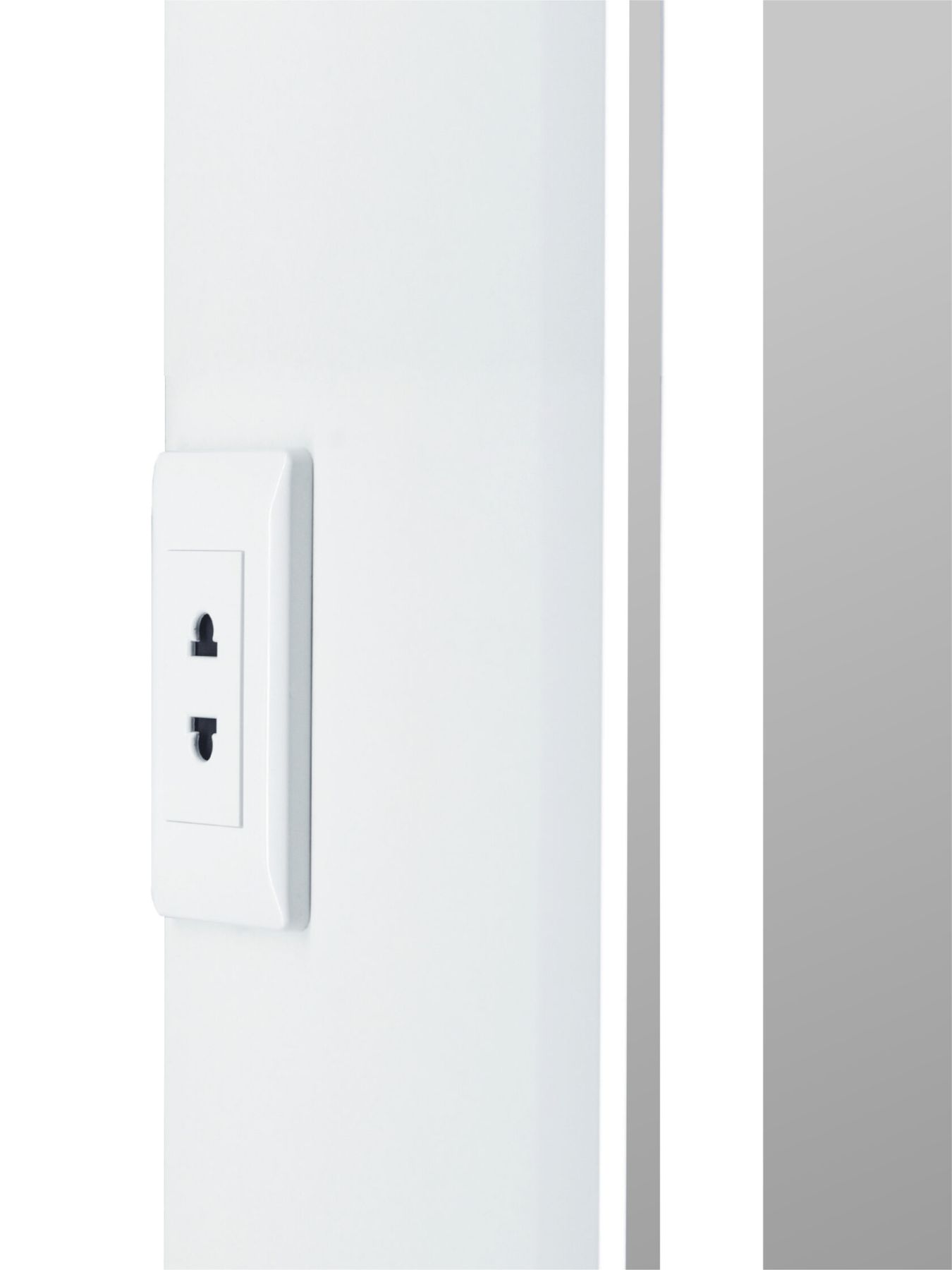 Стеклянные полки легко регулируются по высоте, а розетка позволит удобно использовать электроприборы. Хромированные крепления не ржавеют при длительной эксплуатации в условиях повышенной влажности. Защита по стандарту IP44 обеспечивает безопасное использование устройства в условиях повышенной влажности