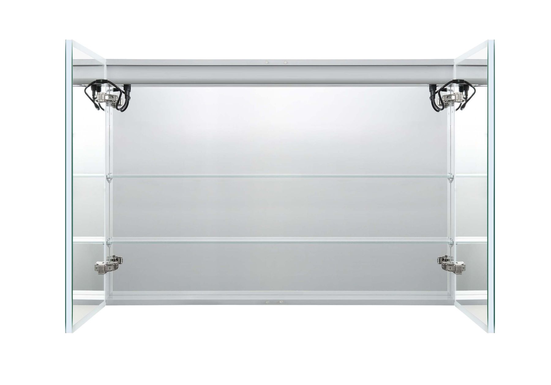 Габариты (Д В Ш), мм: 1000*700*133Алюминиевый зеркальный шкаф с подсветкойФорма: прямоугольнаяМонтаж: подвесной, монтируется на поверхность или в нишуДве зеркальные дверцы шириной 49,85см. Двусторонние зеркальные двери и зеркальные боковиныДве стеклянные полки 8 мм.Материал: алюминийЦвет: хромЗеркальный салонКруговая подсветка SMD 2835-120P, цветовая температура 2500K/6500KФункция антизапотевания2 режима переключения света/ цветаСенсорное управлениеПетли BLUM, открывание 95 градусов с доводчиком, обеспечивающим плавное закрываниеМебель поставляется в собранном видеДополнительное оснащение зеркала: подвесыГарантия: 1 год