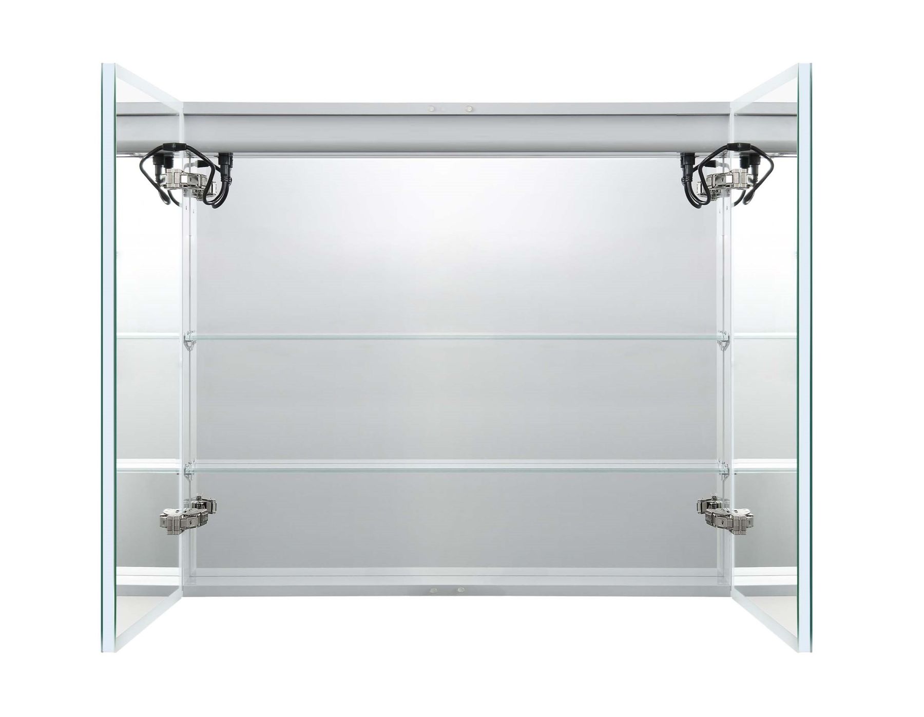 Габариты (Д В Ш), мм: 800*700*133Алюминиевый зеркальный шкаф с подсветкойФорма: прямоугольнаяМонтаж: подвесной, монтируется на поверхность или в нишуДве зеркальные дверцы шириной 39,85см. Двусторонние зеркальные двери и зеркальные боковиныДве стеклянные полки 8 мм.Материал: алюминийЦвет: хромЗеркальный салонКруговая подсветка SMD 2835-120P, цветовая температура 2500K/6500KФункция антизапотевания2 режима переключения света/ цветаСенсорное управлениеПетли BLUM, открывание 95 градусов с доводчиком, обеспечивающим плавное закрываниеМебель поставляется в собранном видеДополнительное оснащение зеркала: подвесыГарантия: 1 год