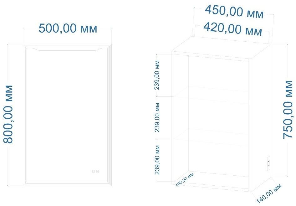 Зеркало-шкаф с подсветкой Art&Max Merano правый 50см белый AM-Mer-500-800-1D-R-DS-F