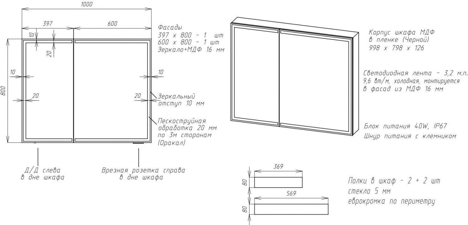 Зеркало-шкаф с подсветкой Art&Max Techno 100см чёрный матовый AM-Tec-1000-800-2D-F-Nero купить