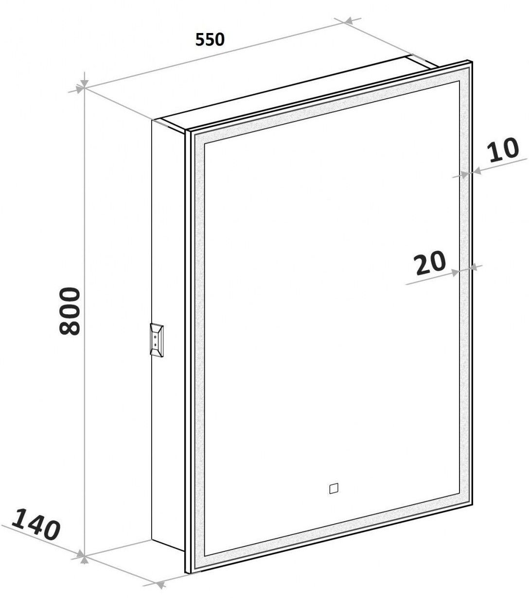 Зеркало-шкаф с подсветкой Art&Max Techno правый 55см белый AM-Tec-550-800-1D-R-DS-F