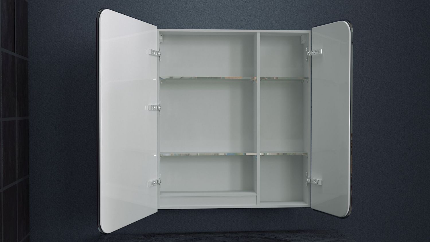 Зеркальный шкаф Art&Max выполнен в современном стиле и отлично дополнит интерьер любой ванной комнаты. Благодаря подвесной конструкции модель не занимает много места, что позволяет экономить пространство в небольшой ванной комнате. Модель оснащена двумя распашными дверцами с полочками, встроенной светодиодной LED подсветкой с диммером и сенсорным выключателем. Фасад выполнен из влагостойкой ЛДСП, каркас - из МДФ.В комплект поставки входят зеркальный шкаф, провод ШВВП белый 2*0,75 1,7м с вилкой 1м, розетка и белый навес (542/CBI) Euroorvel.Особенности: